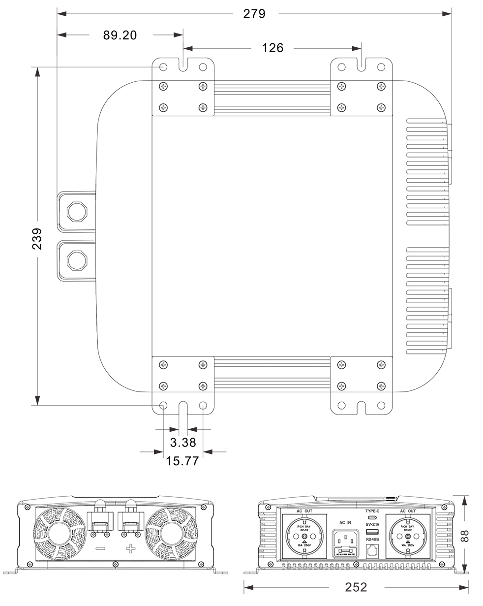 Marrazki mekanikoak: (279x252x88mm mm)