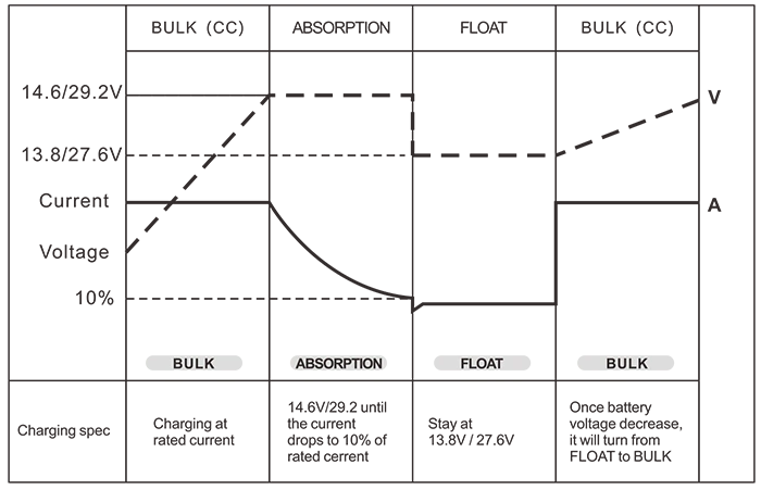 Bateria kontrola (3 etapako bateria-kargagailuak) Bulk/Xurgapena/Flotazioa