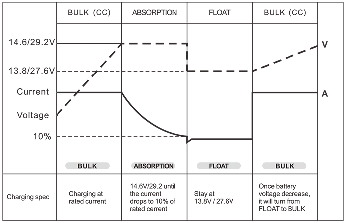Bateria kontrola (3 etapako bateria-kargagailuak) Bulk/Xurgapena/Flotazioa