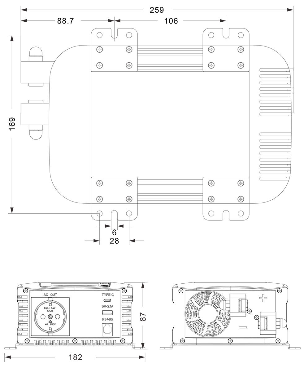 Marrazki mekanikoak: (259x182x87mm)