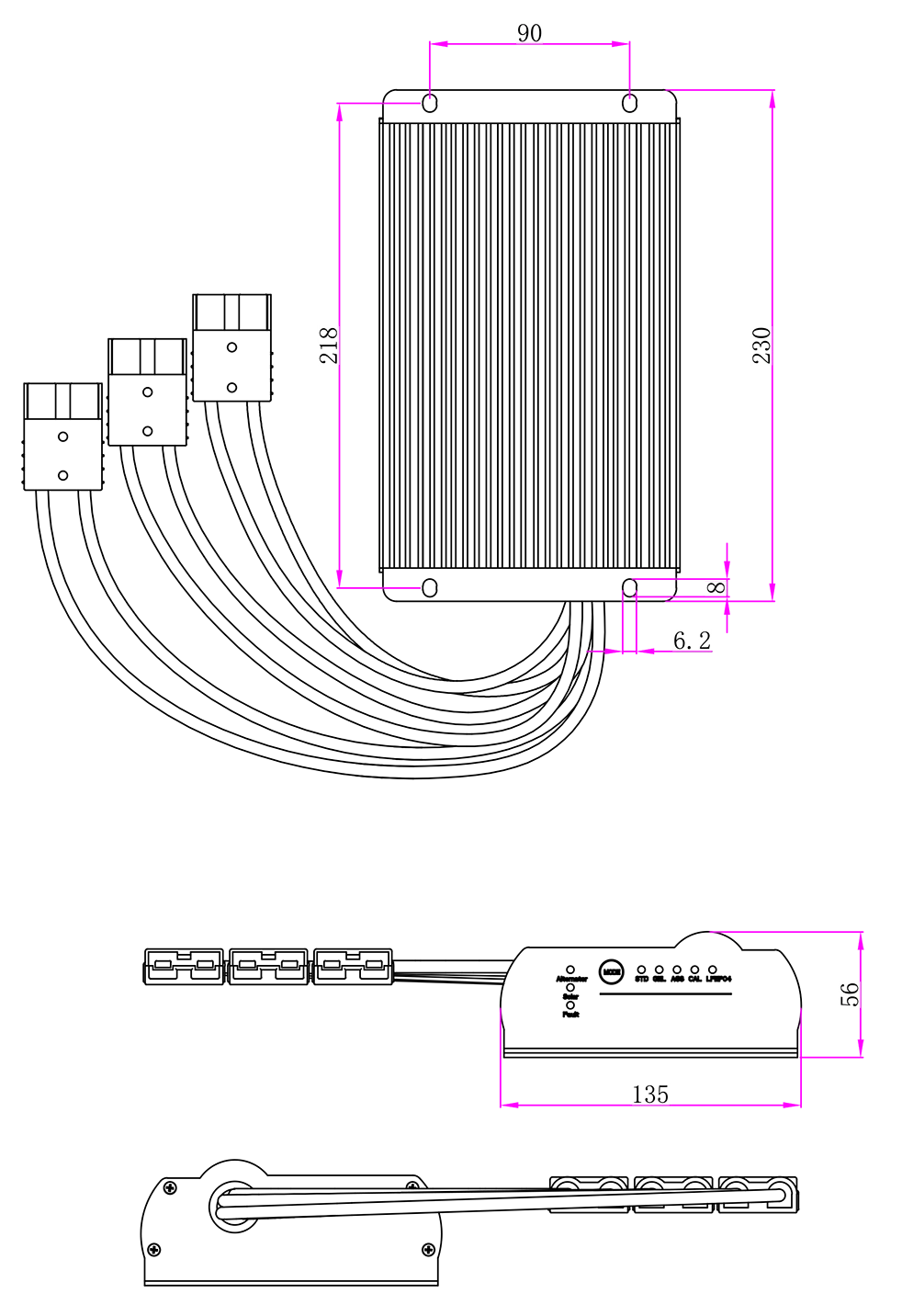 Portu mota 50A Anderson interfazea*3, gutxi gorabehera 30CM-ko kablearen luzera duena